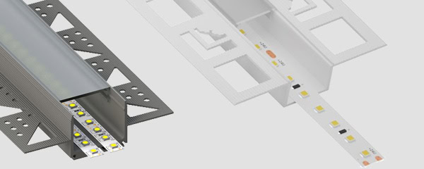 Na voljo so različni tipi profilov, prilagojeni različnim načinom montaže in oblikovnim zahtevam. Vgradni omogočajo diskretno namestitev v pohištvo, stene ali tla, kjer je svetloba skoraj neopazno integrirana v prostor. Nadgradni so odlična rešitev, kadar vgradnja ni mogoča, saj se preprosto namestijo na površino in zagotavljajo funkcionalno ter estetsko osvetlitev. Kotni so idealni za montažo v kote, kjer ustvarijo prijeten in enakomeren svetlobni učinek brez bleščanja.